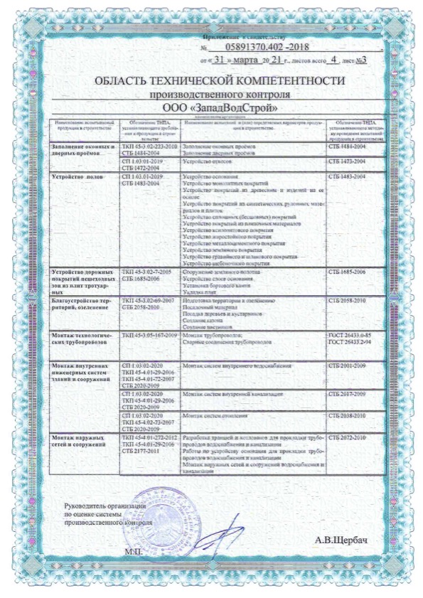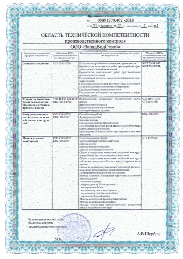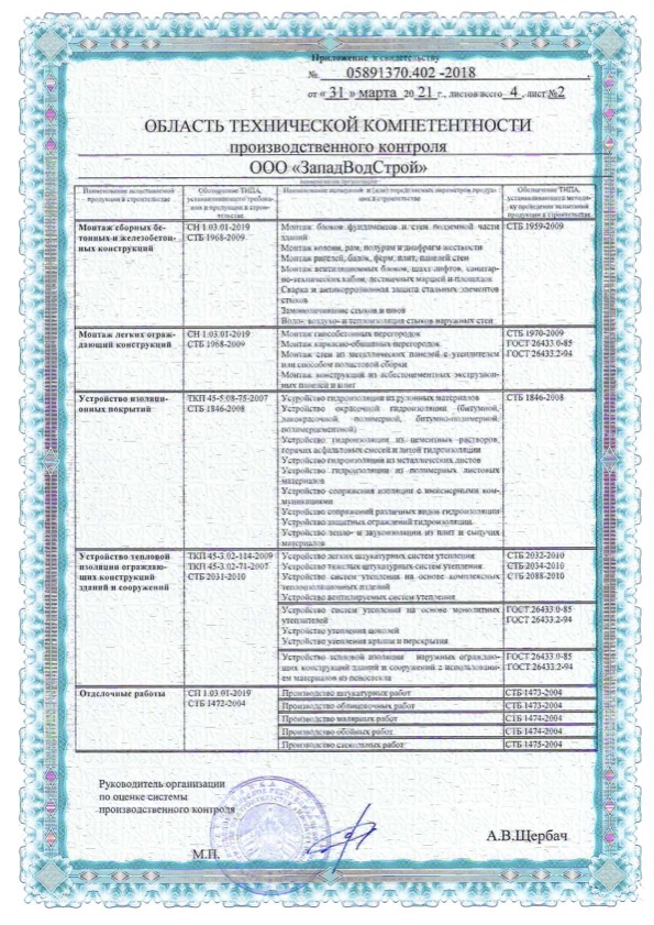 Аттестат соответствия - Строительство объектов первого-четвертого классов сложности (лист 2)