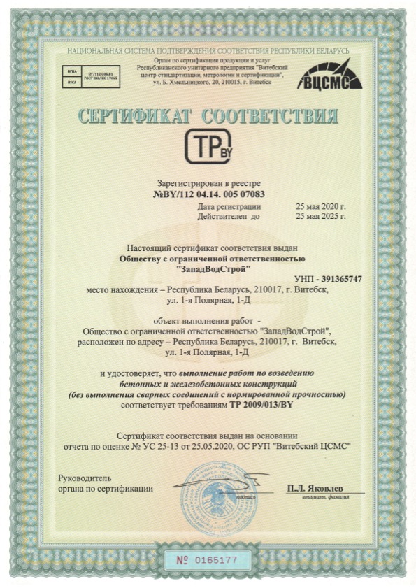 Сертификат соответствия - выполнение работ по возведению бетонных и железобетонных конструкций