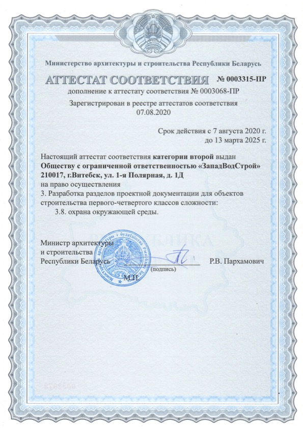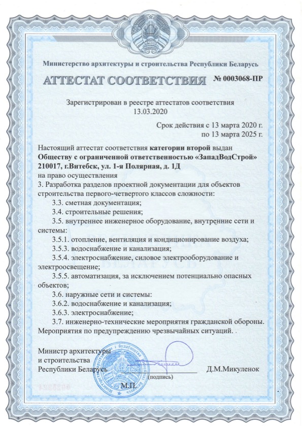 Аттестат соответствия - Разработка разделов проектной документации для объектов строительства первого-четвертого классов сложности