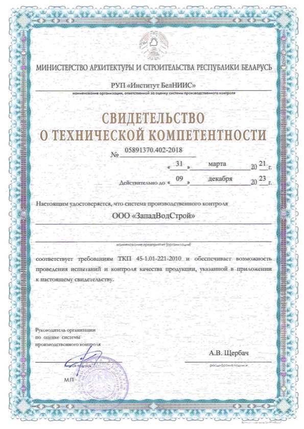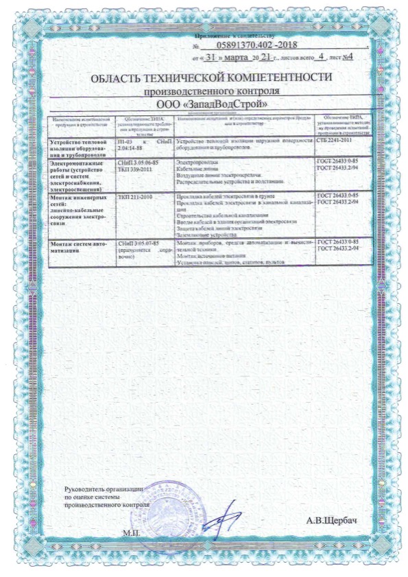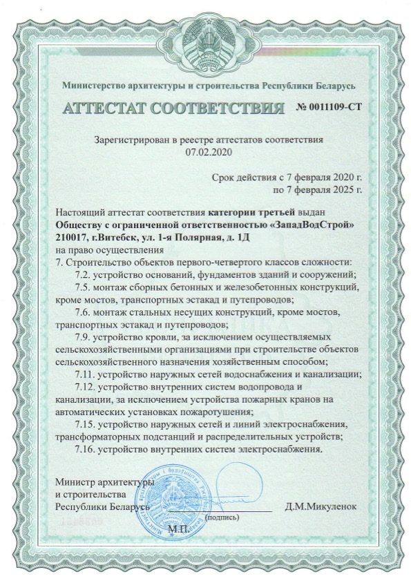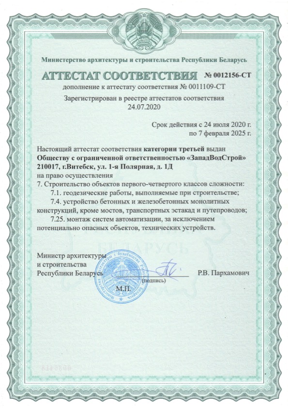 Аттестат соответствия - Строительство объектов первого-четвертого классов сложности