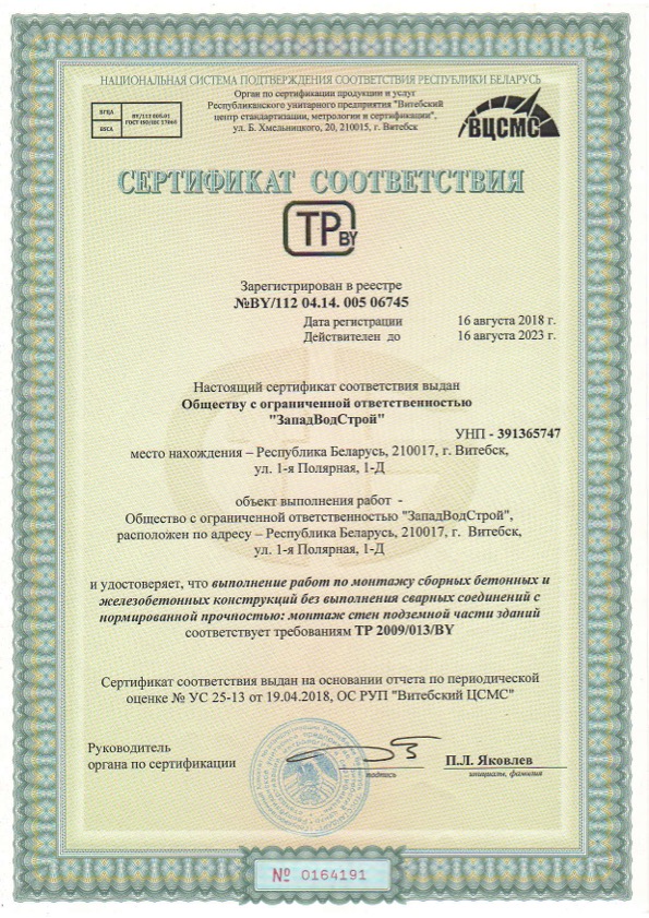 Сертификат соответствия - выполнение работ по монтажу сборных бетонных и железобетонных конструкций